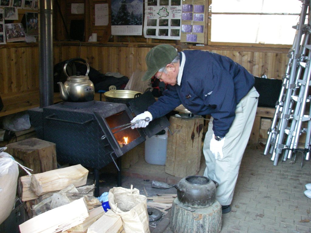 今日は今年最後の作業ということで、Tさんがトン汁を作ってくれるという。材料も刻んで準備していた。小屋のストーブに火を入れて、大きな鍋で煮込む。