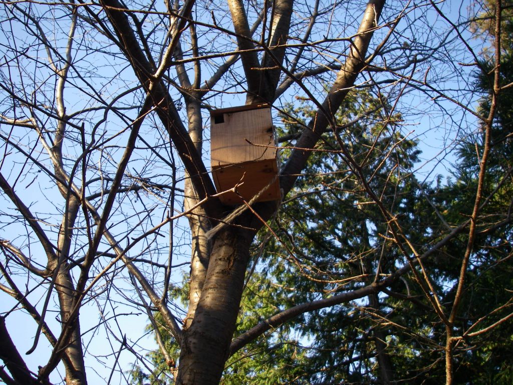 午後の作業は午前中の続き。3個の巣箱は場所を選び、幹にしばりつけてかけられた。前回と合わせると、13個を設置したことになる。さてどれだけ利用されるか、楽しみである。