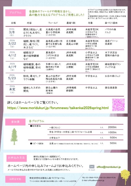 | ちらし | 初心者のための森づくり体験会 2026 ~春の森~ |